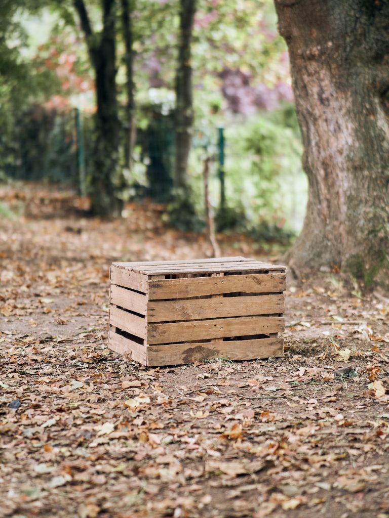 (Die Tafel gab es in der Schule – Schild und Weinkiste sind von mir)